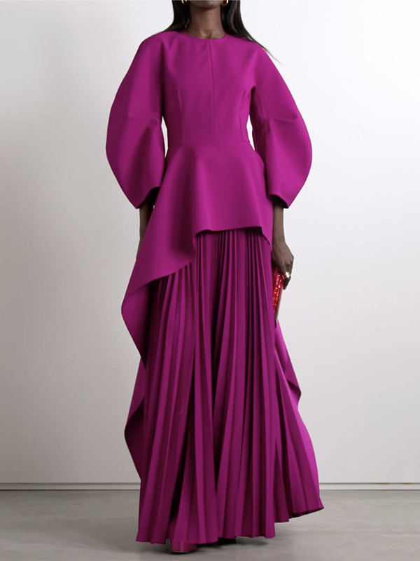 Cape High-Low Pleated Solid Color Split-Joint Round-Neck Evening Dresses Maxi Dresses