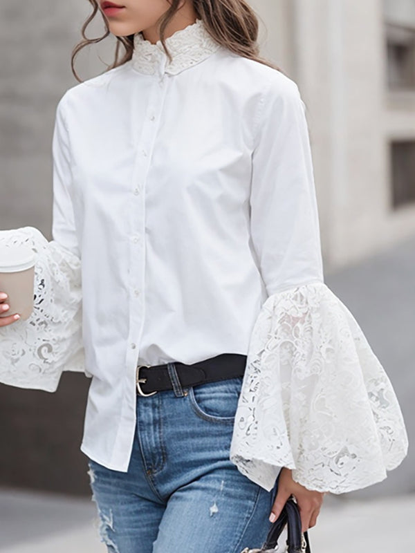Elegant Solid Lace Mandarin Collar Blouses(3 Colors)