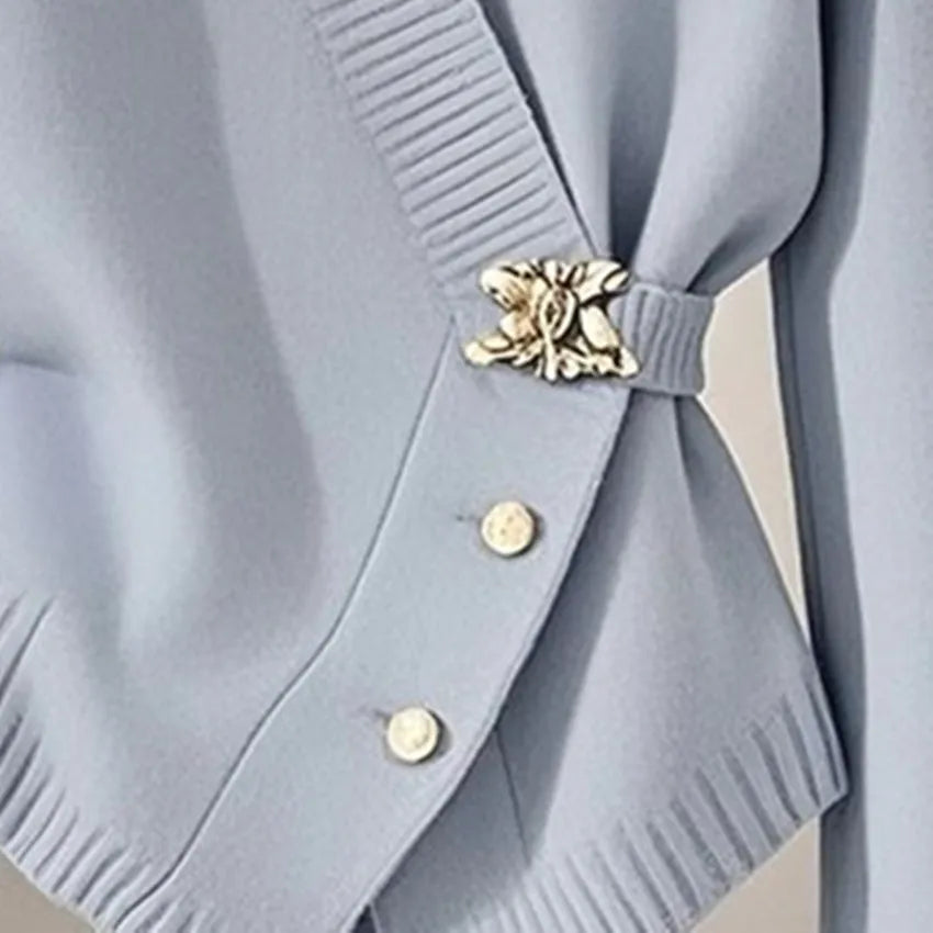 Fashionable Knitted Long Cardigan And Short Sweater Set With Half Skirt