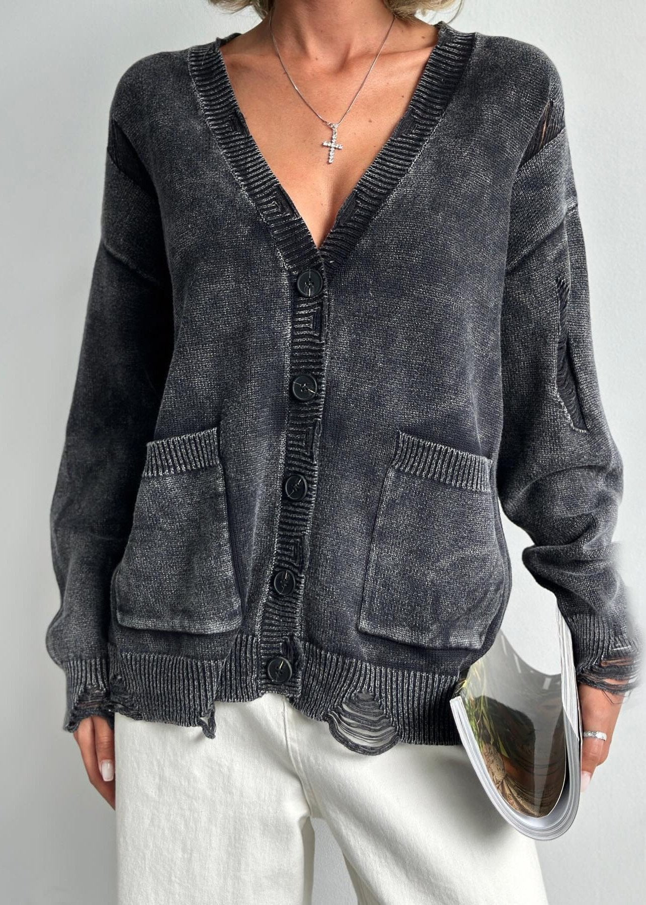 Casual Patchwork Hollowed Out Cardigan(3 Colors)