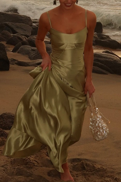 Spaghetti Strap Back Lace-up Satin Maxi Party Dress