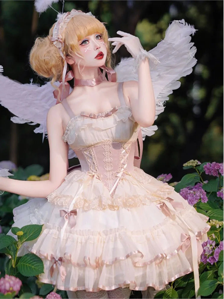 KYLTHOMASW Japan Mini Dress Summer Elegant Sleeveless Cute Lolita Dress Female Solid Tierred Wedding Party Dress Lady White Prom Dress