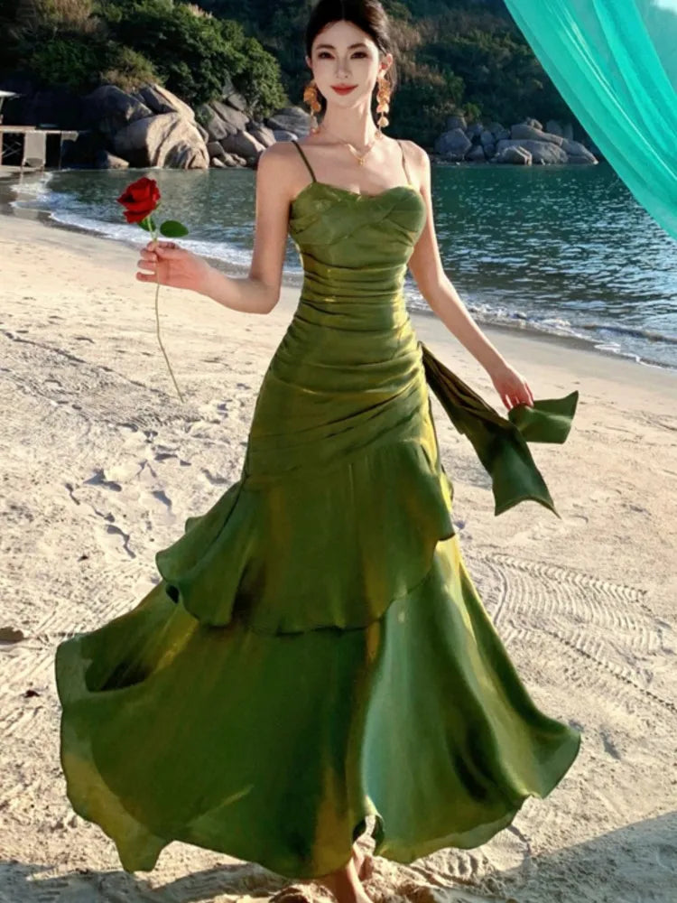 Sexy Spaghetti Strap Long Dresses Elegant Sleeveless Princess Ruffles Evening Party Dress Summer Holiday Beach Vestidos Robe New
