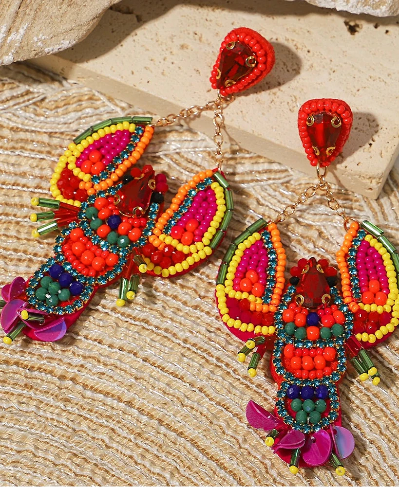 Bohemia Acrylic Handmade Beaded Flowered Leaves Earrings