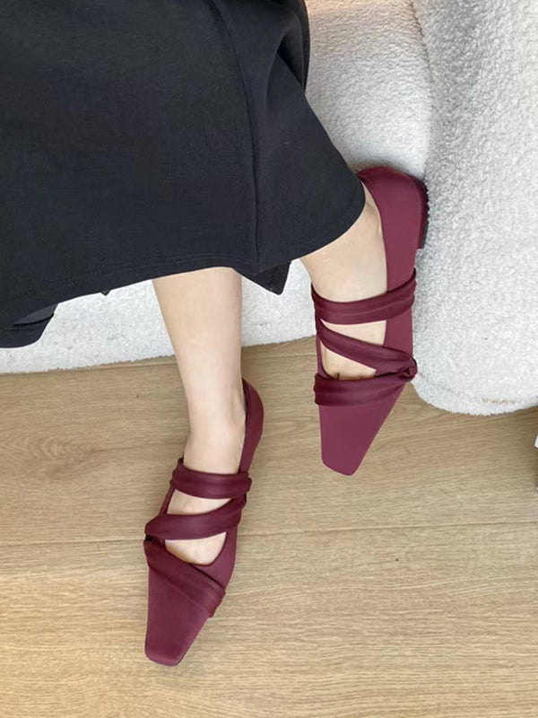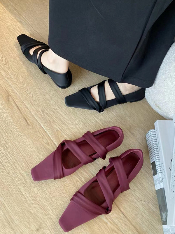 Contrast Color Shallow Cut Split-Joint Square-Toe Flats Mary Janes Slippers&Mules