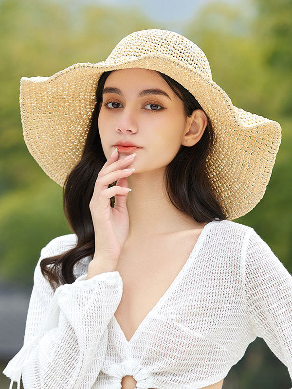 Sun-Protection Hollow Solid Color Wide Side Woven Hats&Caps