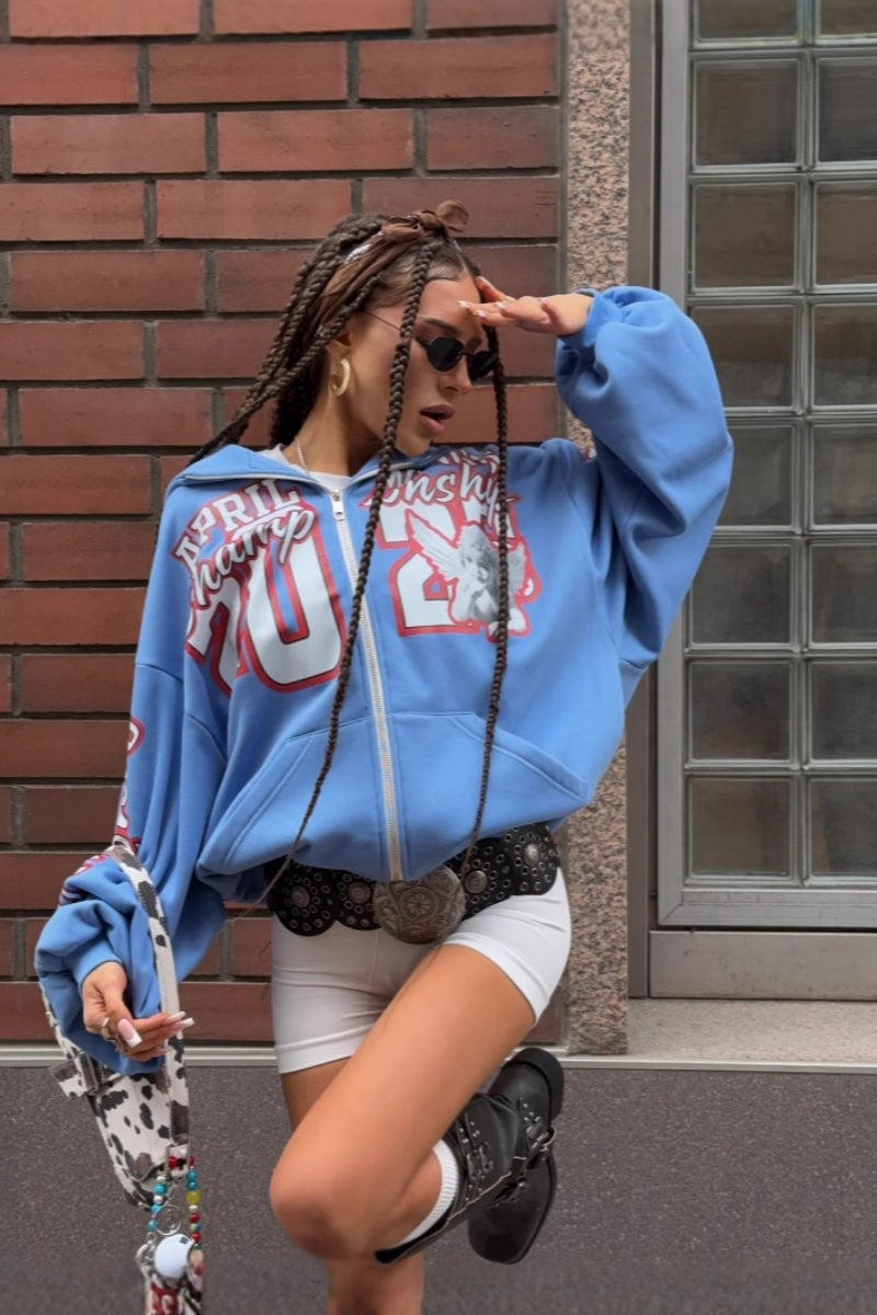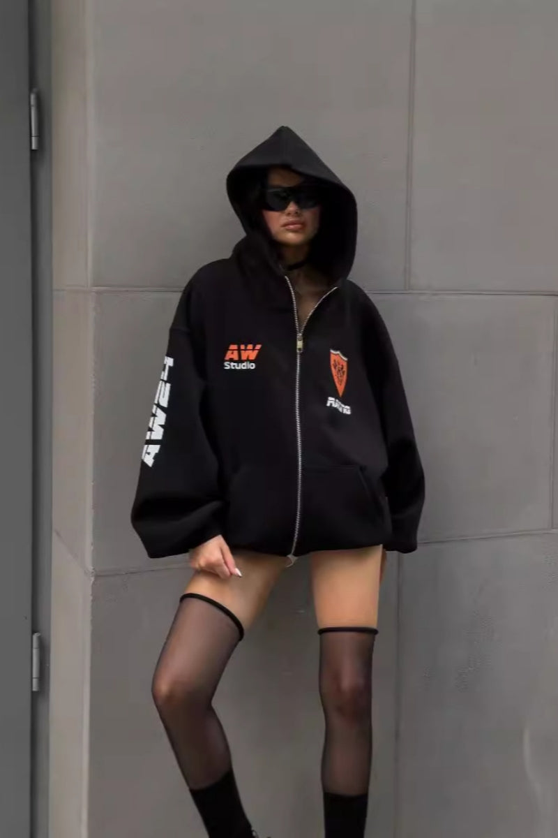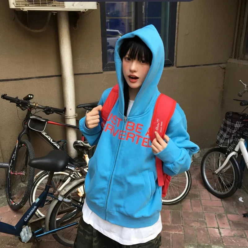 Y2K Letter Print Hoodies Sweatshirt Women Korean Fashion Cotton Zipper Loose Jacket New Harajuku Streetwear Ladies Tops