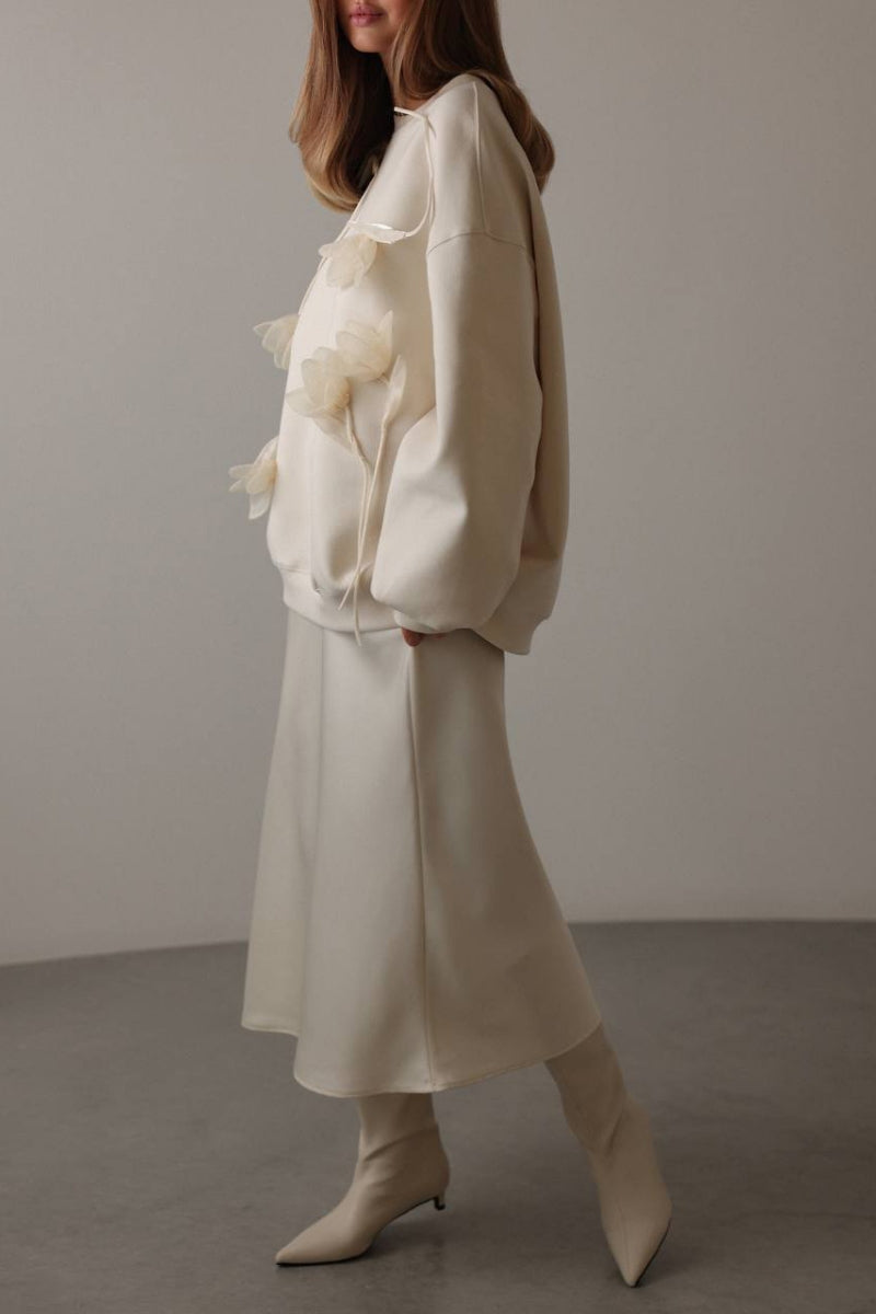 Solid Color Round Neck Long-sleeved Sweatshirt and Elastic Waist Pants Set