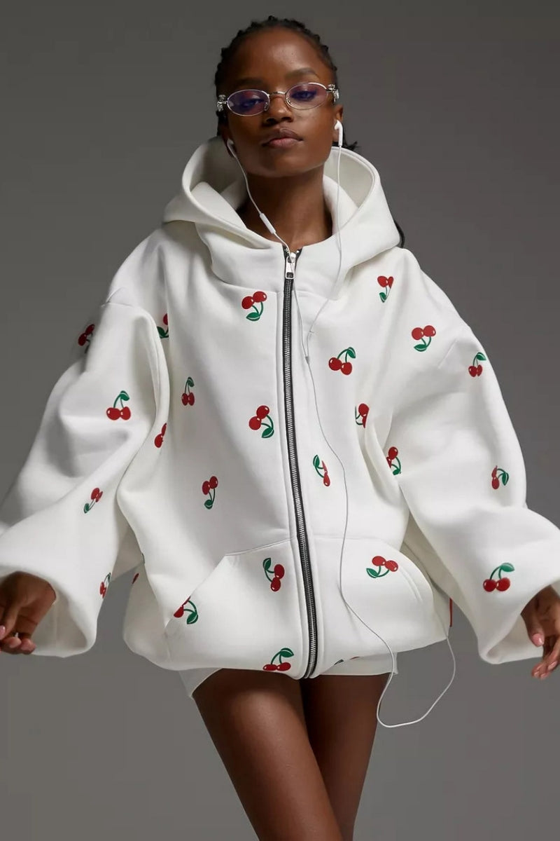 Autumn/Winter American Retro Hot Girl Plum Pink Leopard Pattern Loose Hoodie Women Top Vintage Zipper Coat Sweatshirt for Women