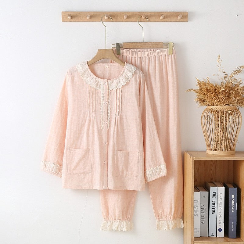 Lace Trim Long Sleeve Pajama Set For Outwear