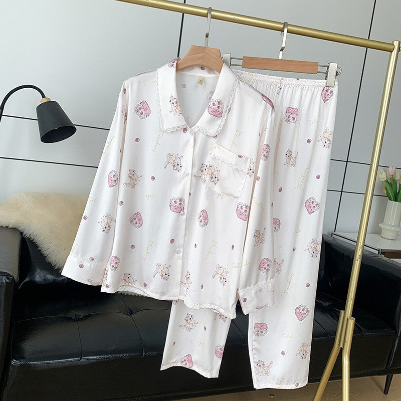 Cute Printed Long Sleeve Long Pants Thin Pajama Set