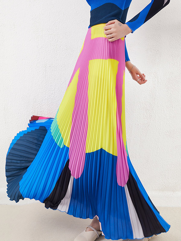 A-Line Loose Contrast Color Pleated Skirts Bottoms
