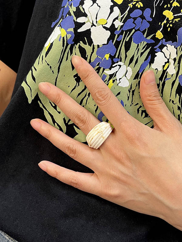 Solid Color Textured Creases Design Sense Rings Accessories