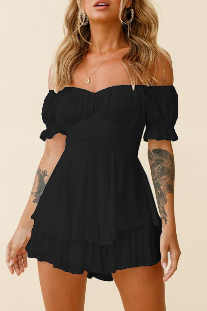 Casual Solid Flounce Off the Shoulder Straight Rompers(9 Colors)