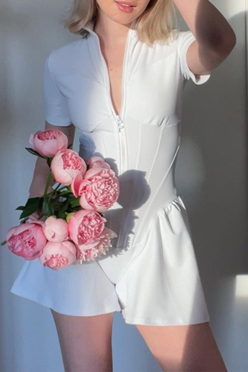 Sexy Zipper Mandarin Collar Regular Rompers(3 Colors)