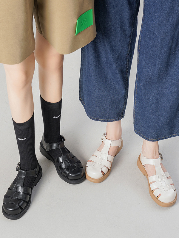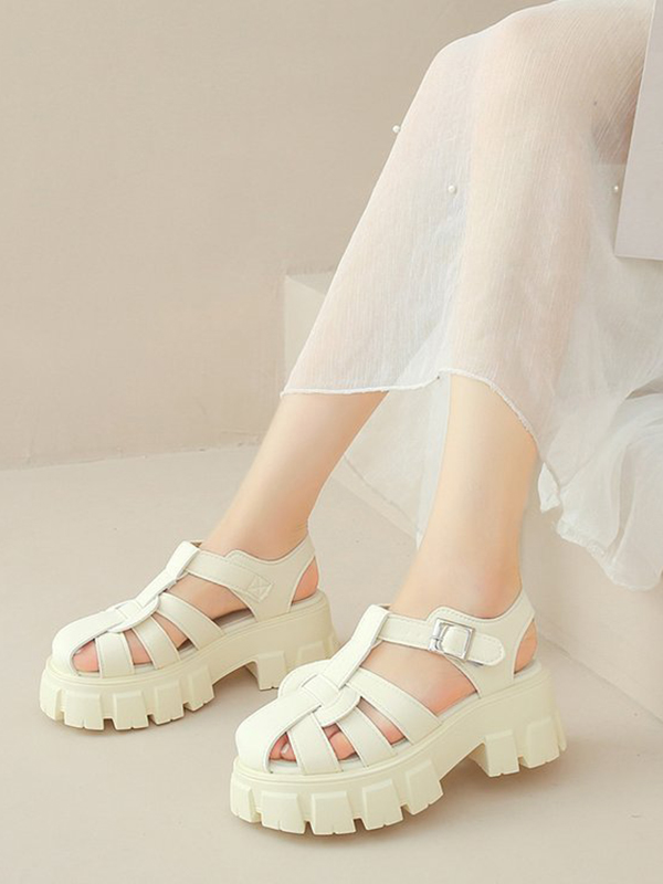 Belt Buckle Hollow Round-Toe Split-Joint Gladiators Platform Shoes Sandals