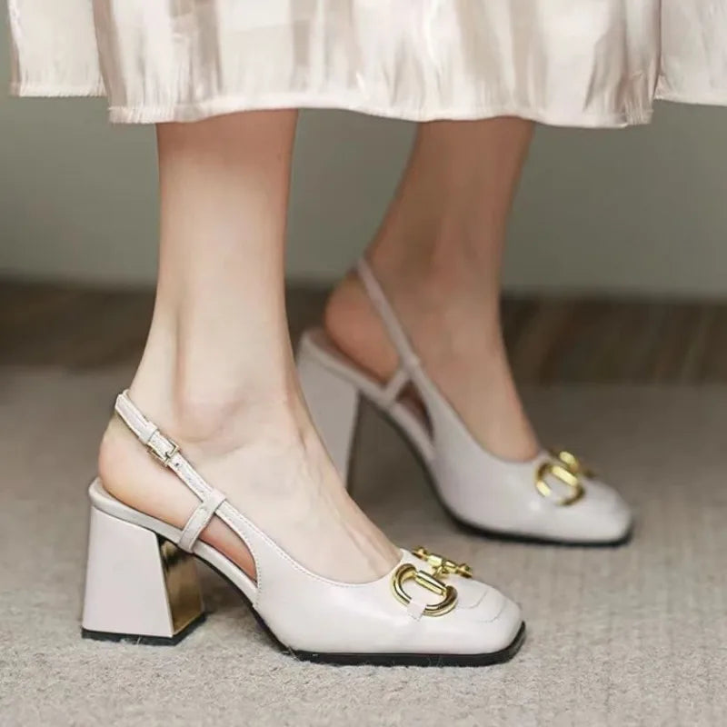 New Fashion High Heel Slippers Women Open Toe Slingback Sandals Female Pumps Square Toe Summer Simple Designer Heeled Sandals