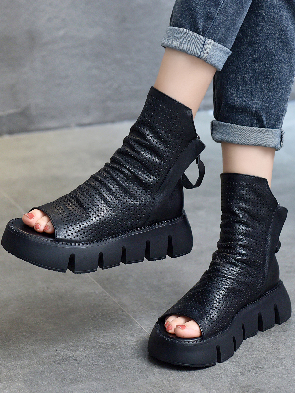 Urban Black Brown Zipper Hollow Platform Shoes