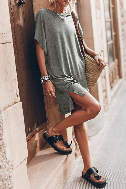 Side Split Batwing Sleeves Shift T-shirt Dress