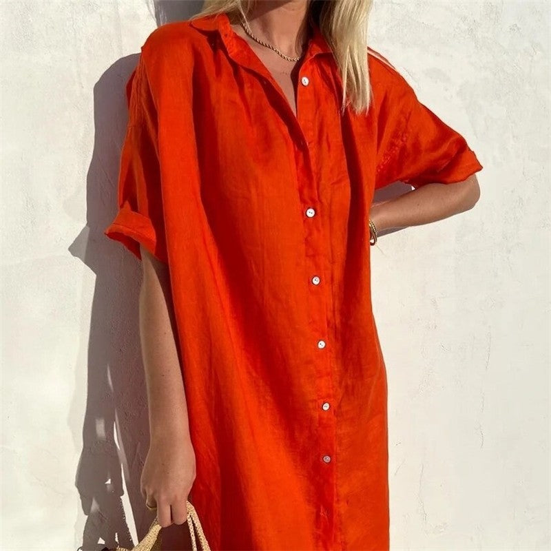 Original Solid Color Lapel Shirt Dress