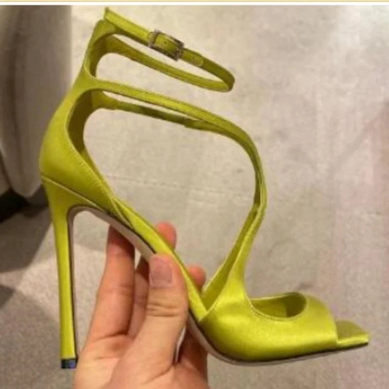 Highquality Hollow Slim High Heel Fish Mouth Sandals, Women's Silk Buckle Strap Sexy Runway Shoes
