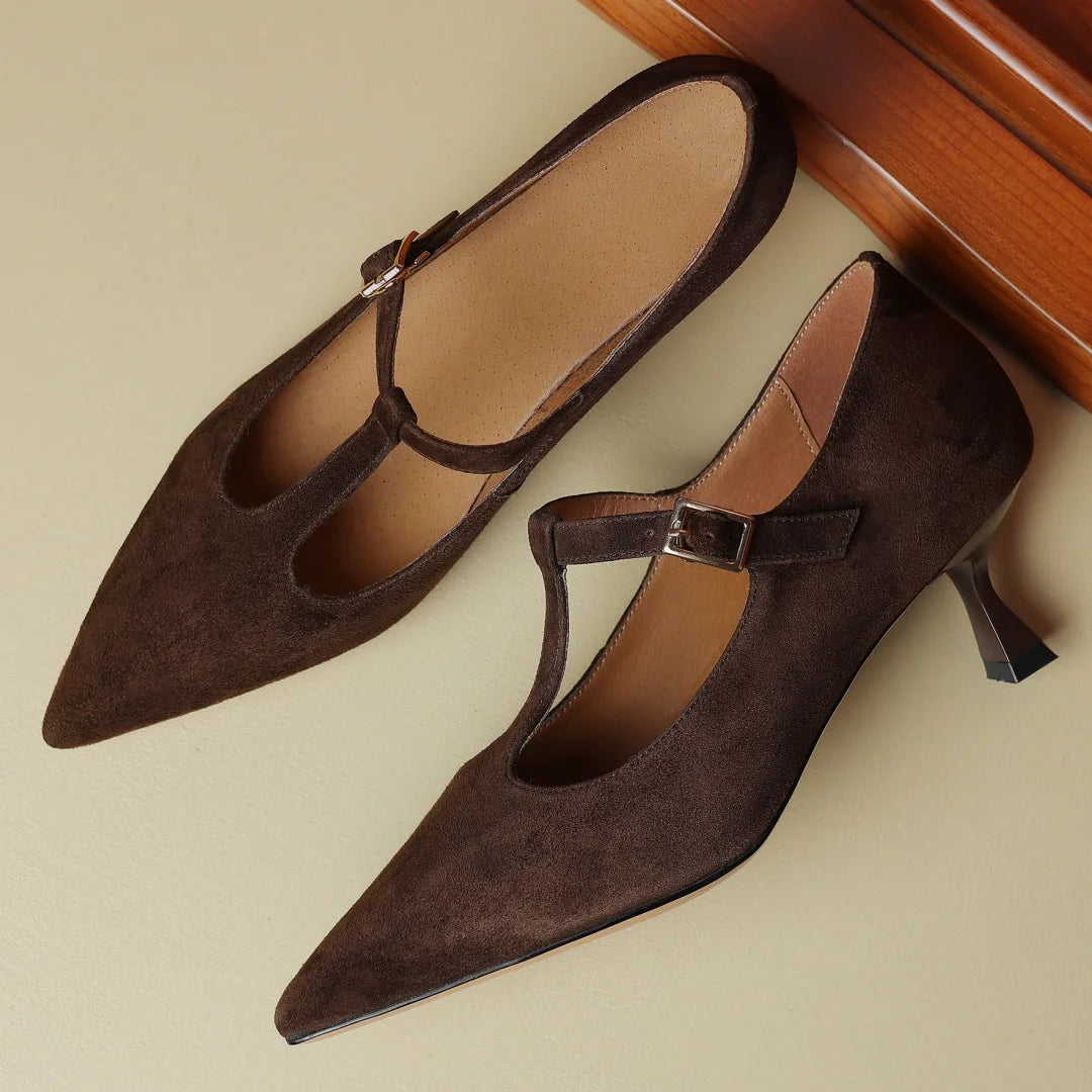 Women's natural suede leather thin high heel pointed toe pumps elegant ladies 2024 spring autumn new heeled retro heeled shoes