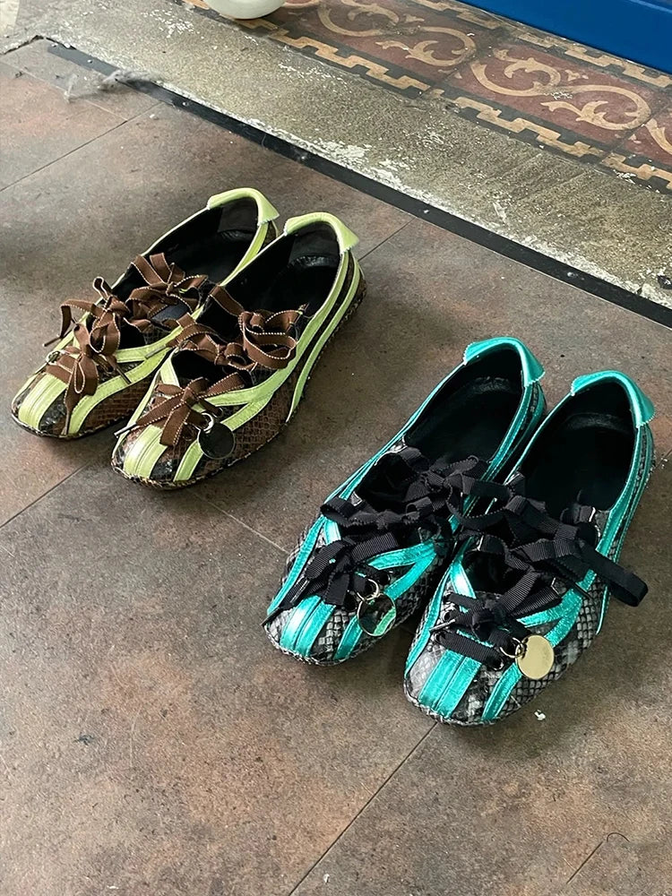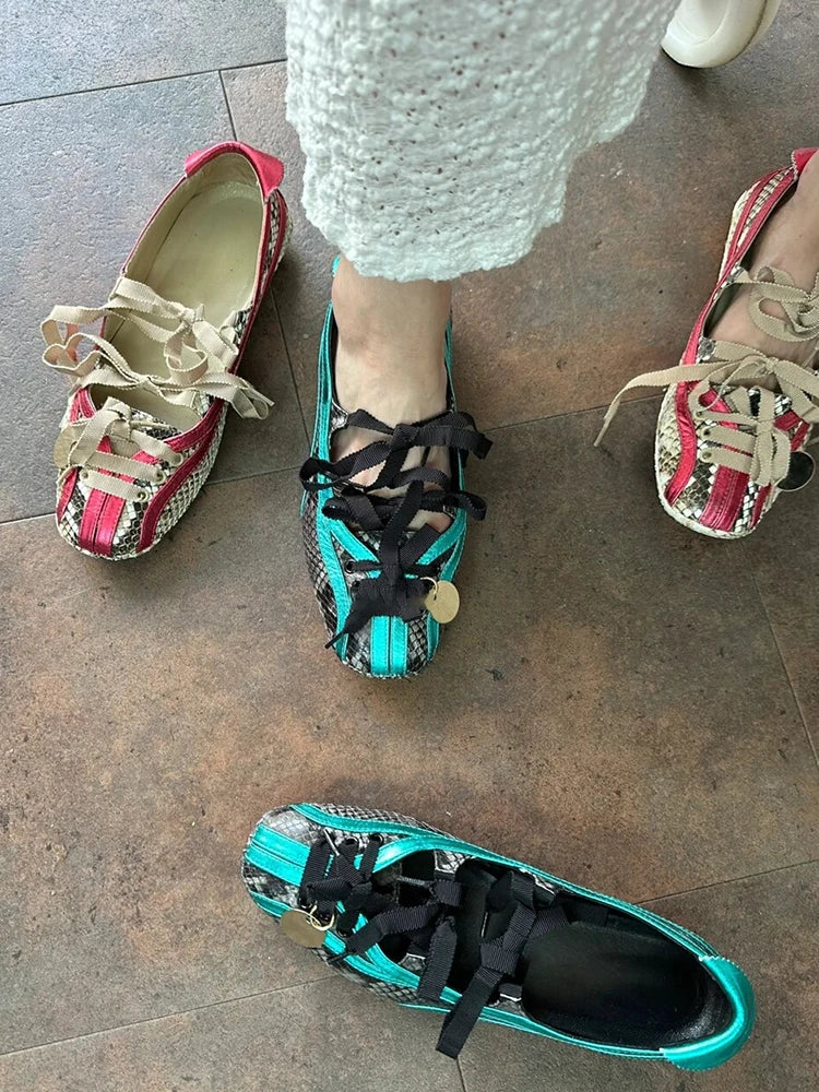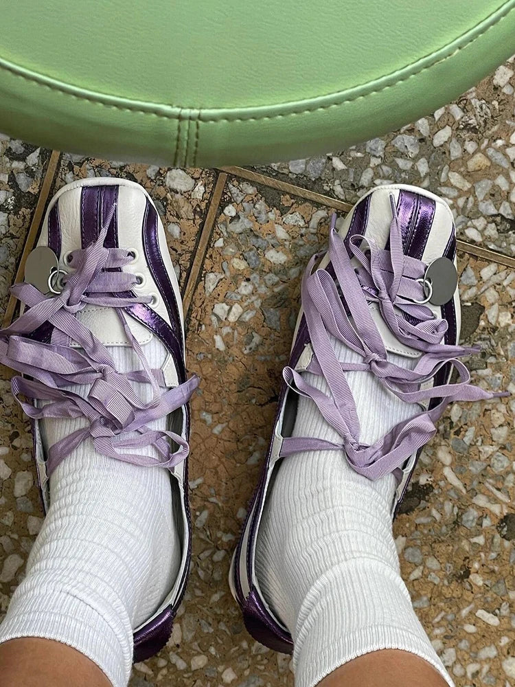 Shallow Laceup Ballet Shoes For Women Round Toe Air Mesh Breathable Solid Color Sports Shoes Outdoor Designer New Brand Shoes