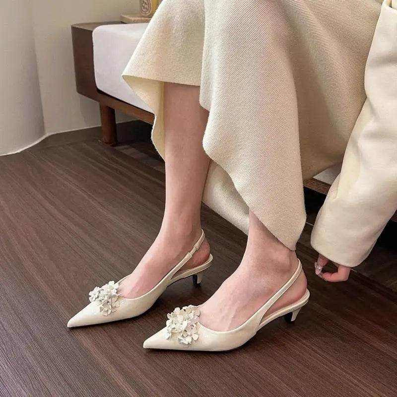 Women Sandals ,Summer New Pointy Flower Sandals, Fashion Midheel Back Empty Women's Single Shoes, Shoes