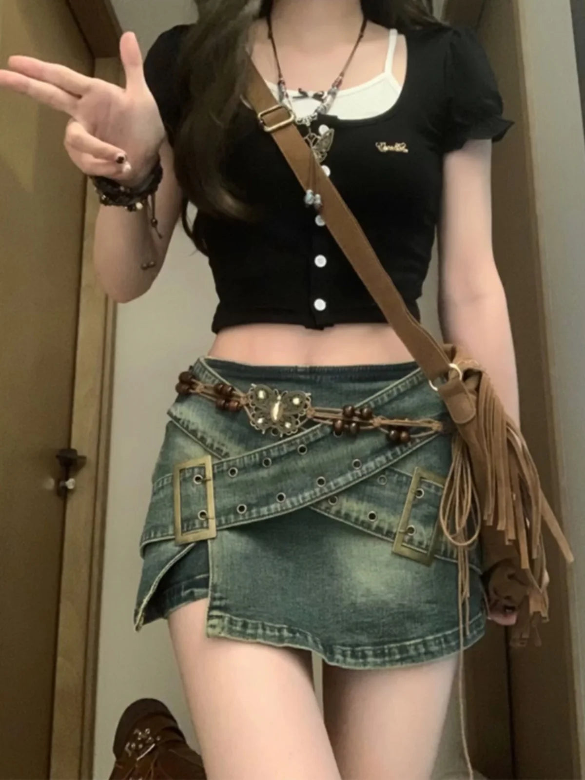 Women's Blue Mini Denim Skirt Vintage Y2k Jean Skirts Harajuku Korean Streetwear Short Cowboy Skirts 2000s Clothes Summer 2024
