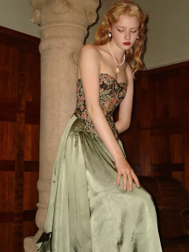 French Palace Classic Sets Women's Summer New High End Jacquard Fishbone Chest With Satin Retro Half Skirt Sets