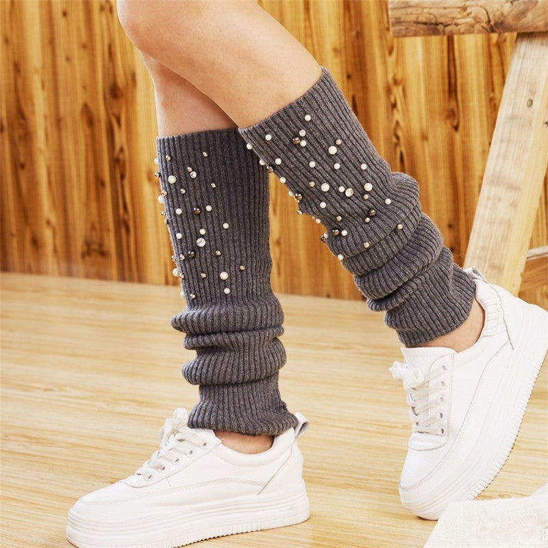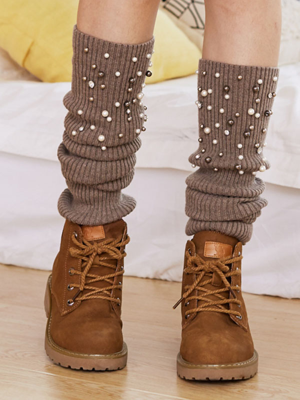 Knitted Bead Decoration Keep Warm Solid Color Leg Warmers Accessories