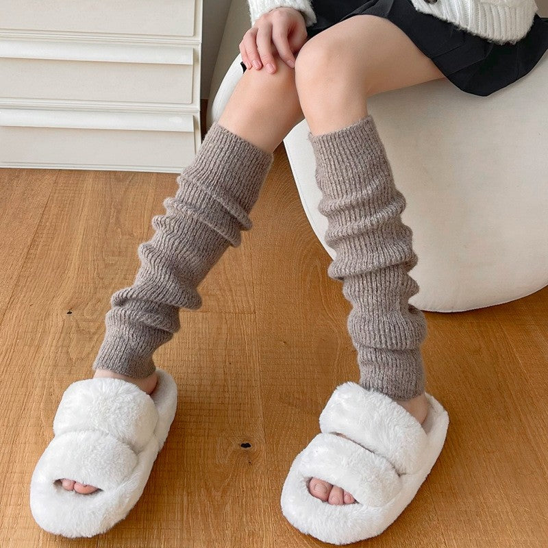 Solid Color Knitted Over-The-Knee Loose Pile Socks