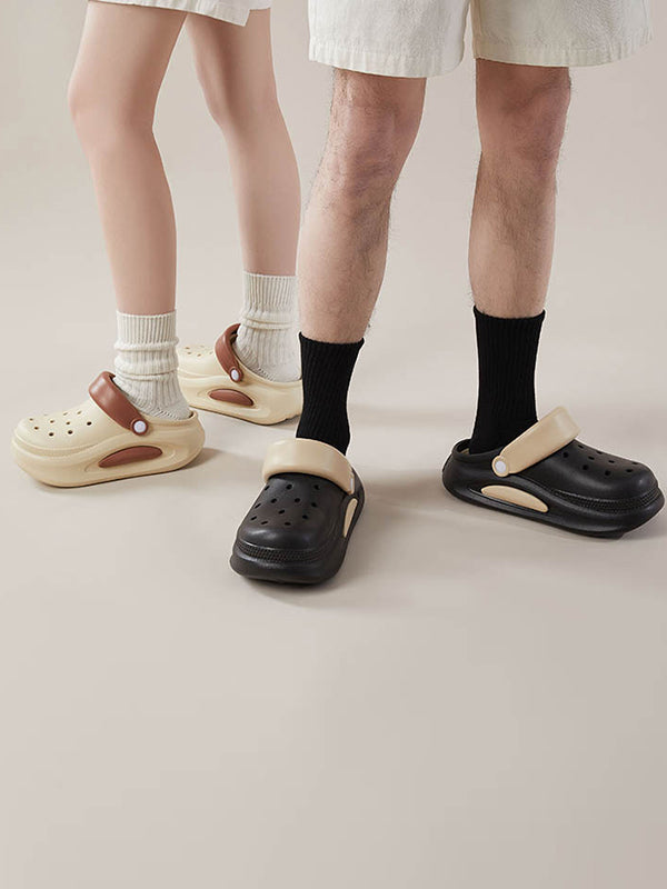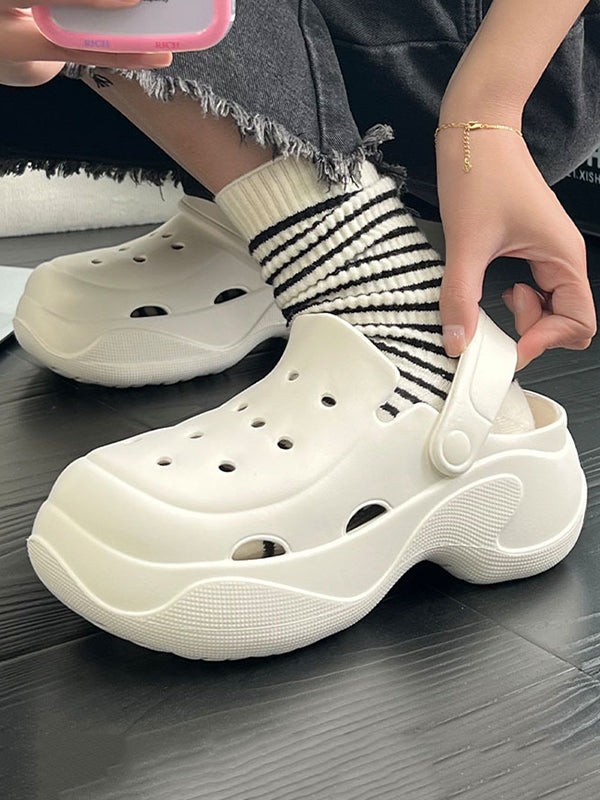 Hollow Round-Toe Solid Color Crocs Sandals Slippers