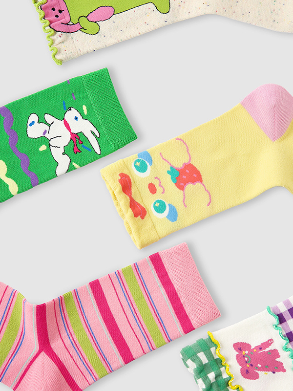 Contrast Color Elasticity Plaid Split-Joint Striped Socks Socks Accessories 5 Pairs