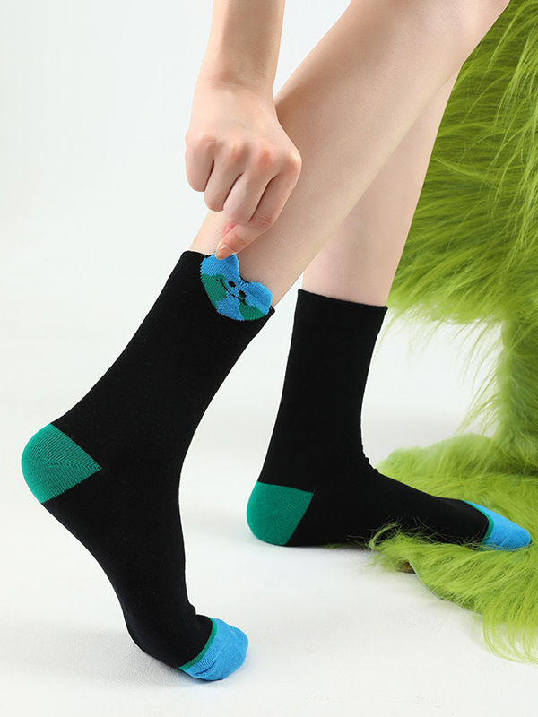 Cartoon Earth Heart Shape Contrast Color Socks Accessories