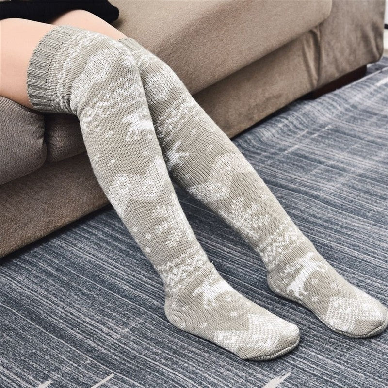 Christmas Reindeer Over-The-Knee Warm Knit Socks