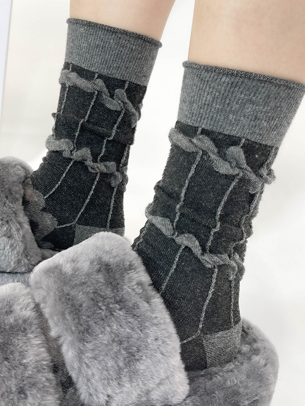 Home Wear Keep Warm Jacquard Solid Color Stockings Accessories