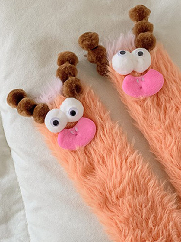 Christmas Cartoon Reindeer Over-The-Knee Knitted Pile Socks