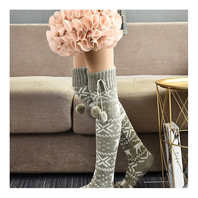 Knitted Over-The-Knee Christmas Jacquard Stockings With Ribbons