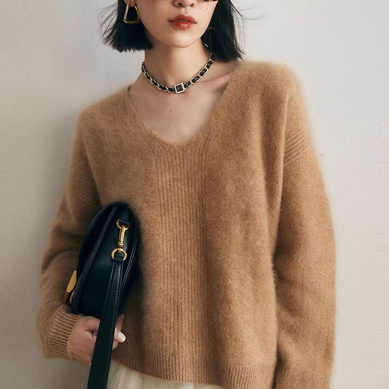Loose Raglan Sleeve Solid Color Round-neck Knitwear Pullovers