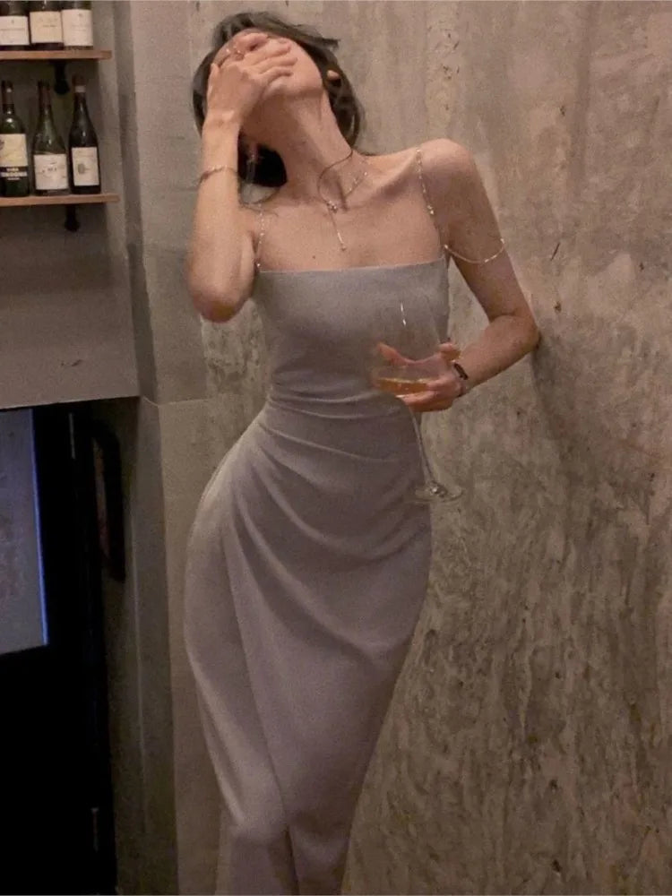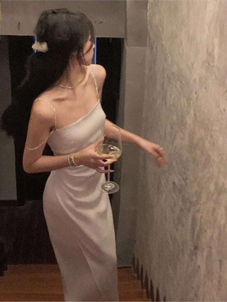 Summer Women Sexy Spaghetti Strap Evening Party Prom Club 2024 New Elegant Backless Split Satin Long Dresses Female Vestidos