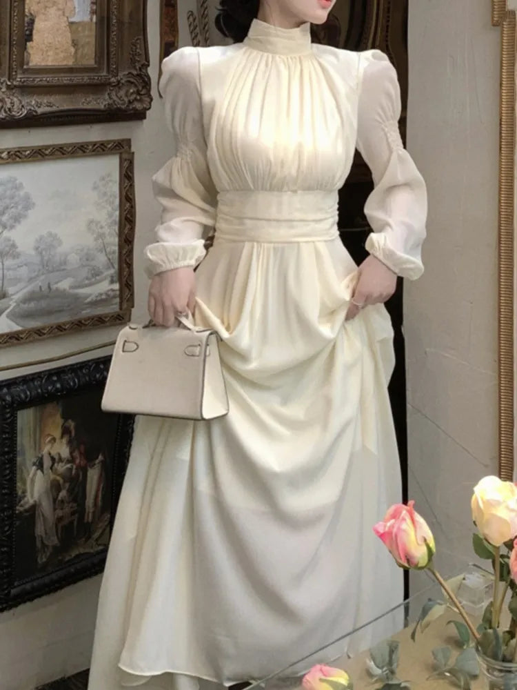 Fashion New Women Elegant Casual Long Dress Autumn Vintage ALine Solid Party Birthday Dresses Female Clothes Robe Vestidos