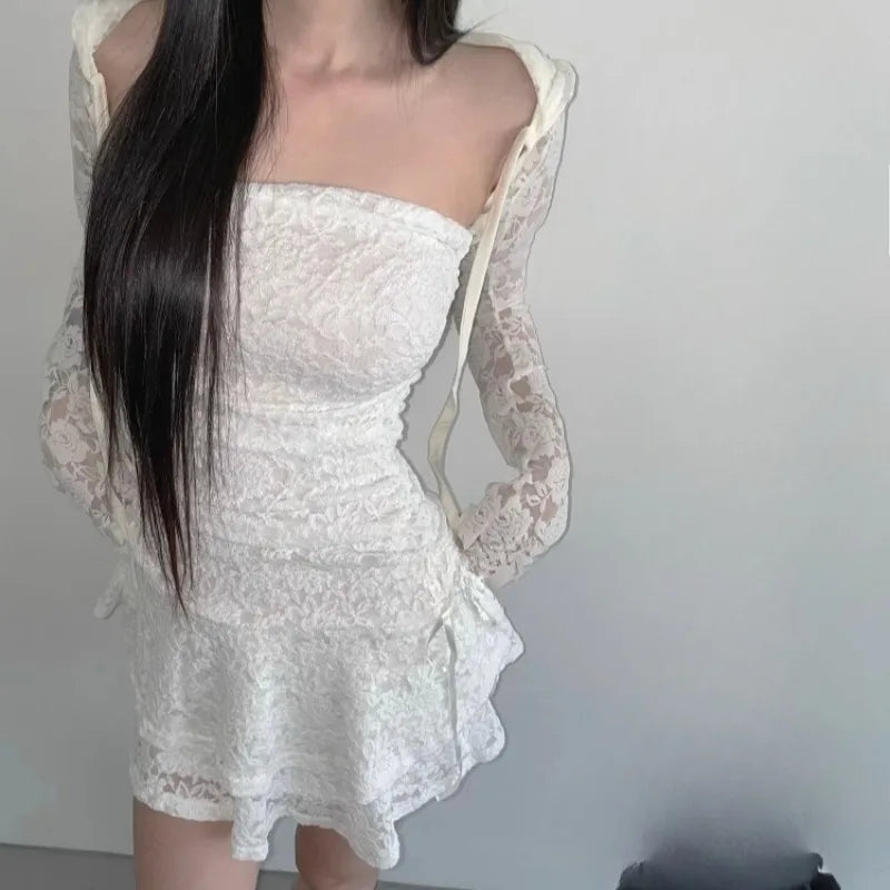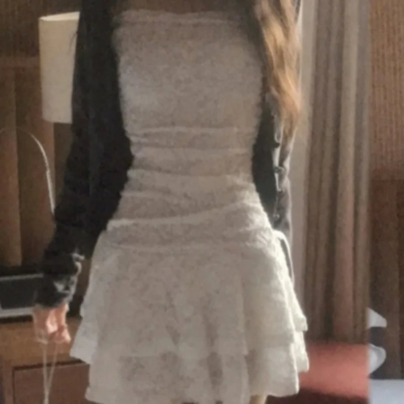 Y2k Clothes Lace Dresses Women Solid Spring Summer Sexy Vintage Mini Dress Korean Fashion Off Shoulder Vestidos