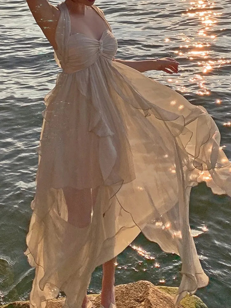 Women Irregular Beach Strap Dress New Fashion France Female Elegant Chiffon Fairy Party Vestidos Korea Summer Casual Clothing