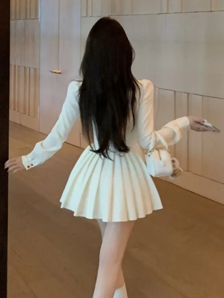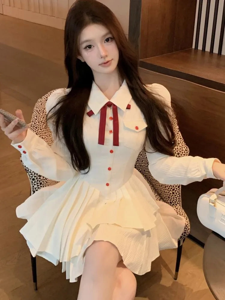 Vintage Sweet Mini Dress for Women Elegant Preppy Style Party Pleated Mini Dresses Slim Short Vestidos Fashion Female Outfits