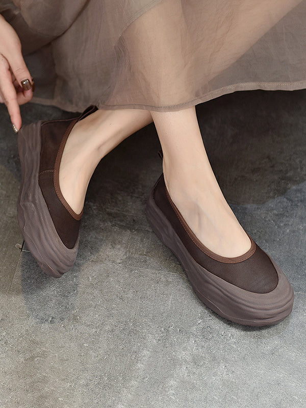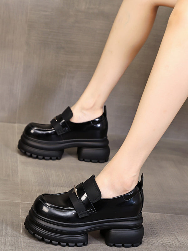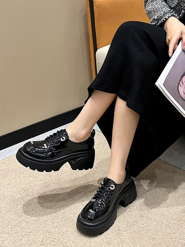 Lace-Up Round-Toe Split-Joint Loafers Platform Shoes
