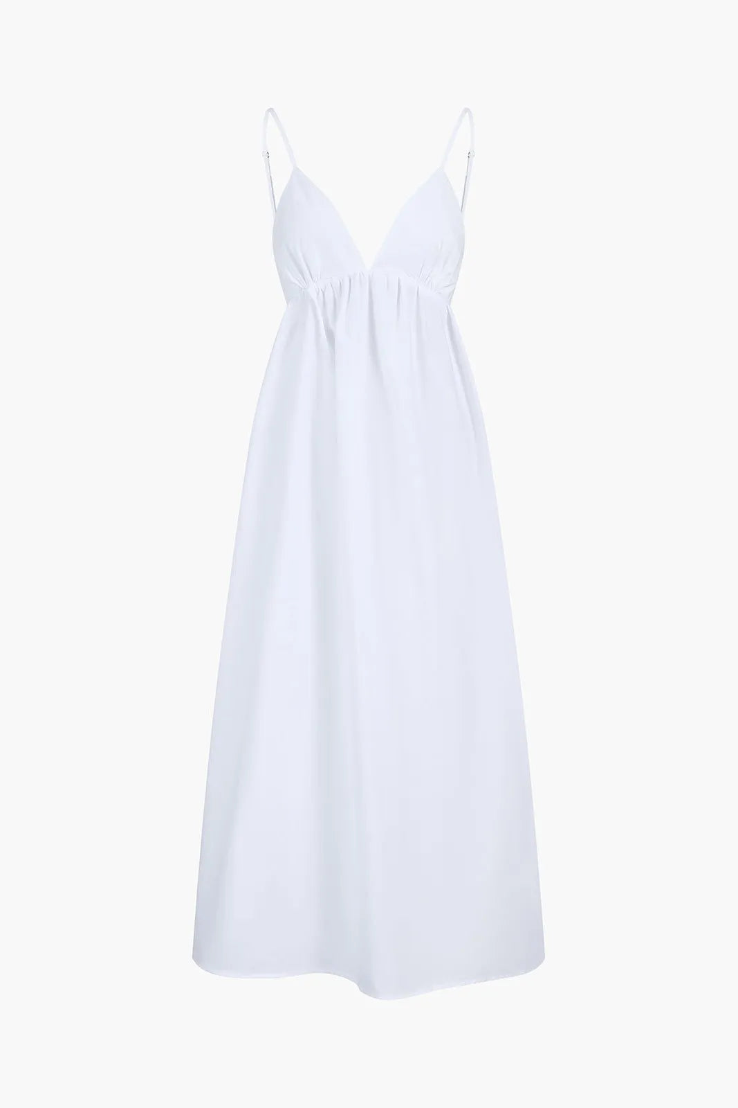 Loose Sleeveless Pleated Solid Color Split-Joint Spaghetti-Neck Midi Dresses