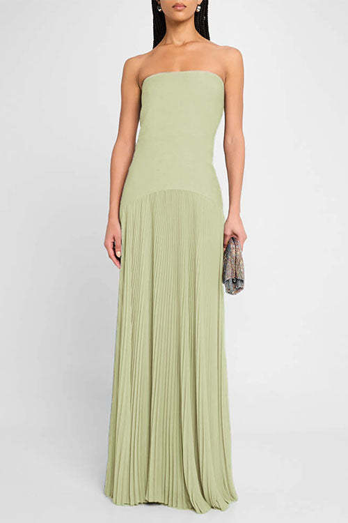 Strapless Tube Patchwork Pleated Maxi Dress