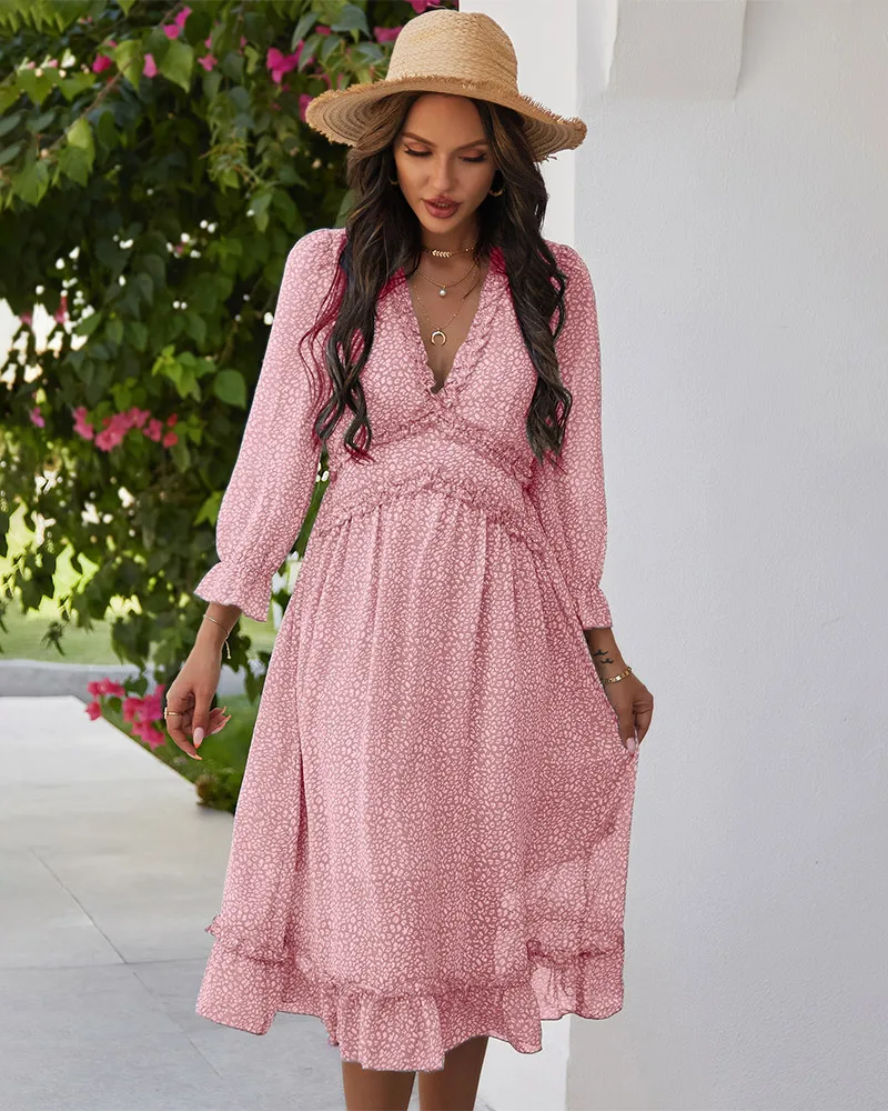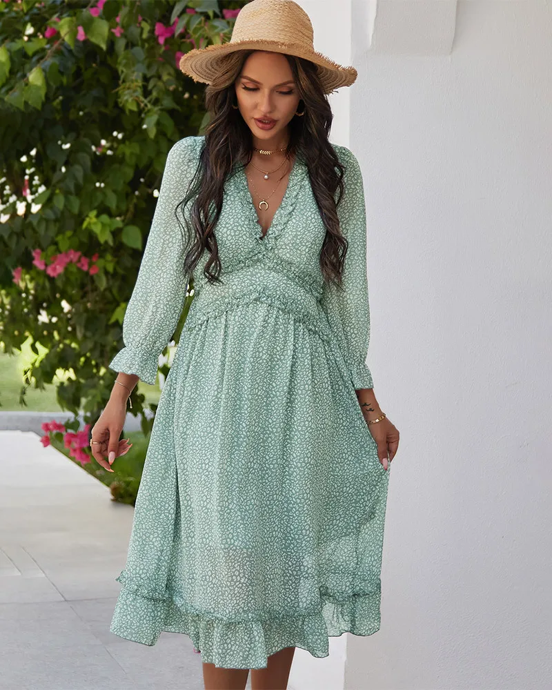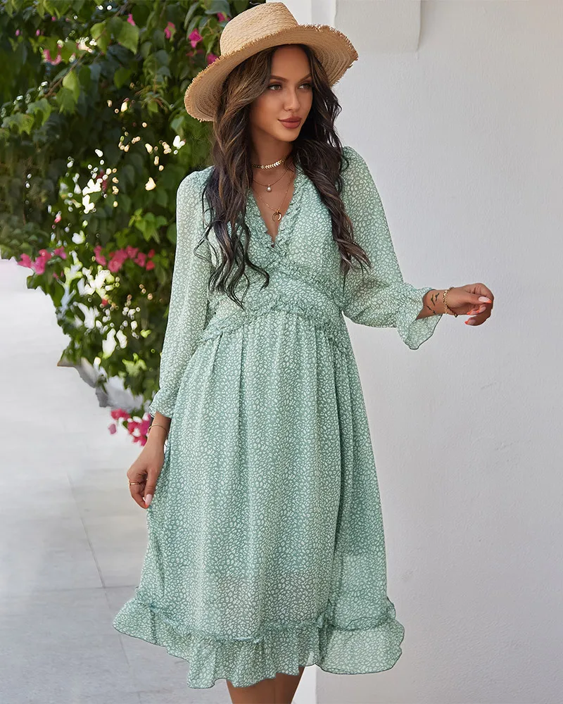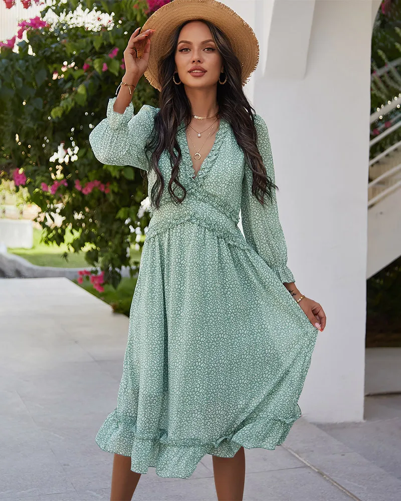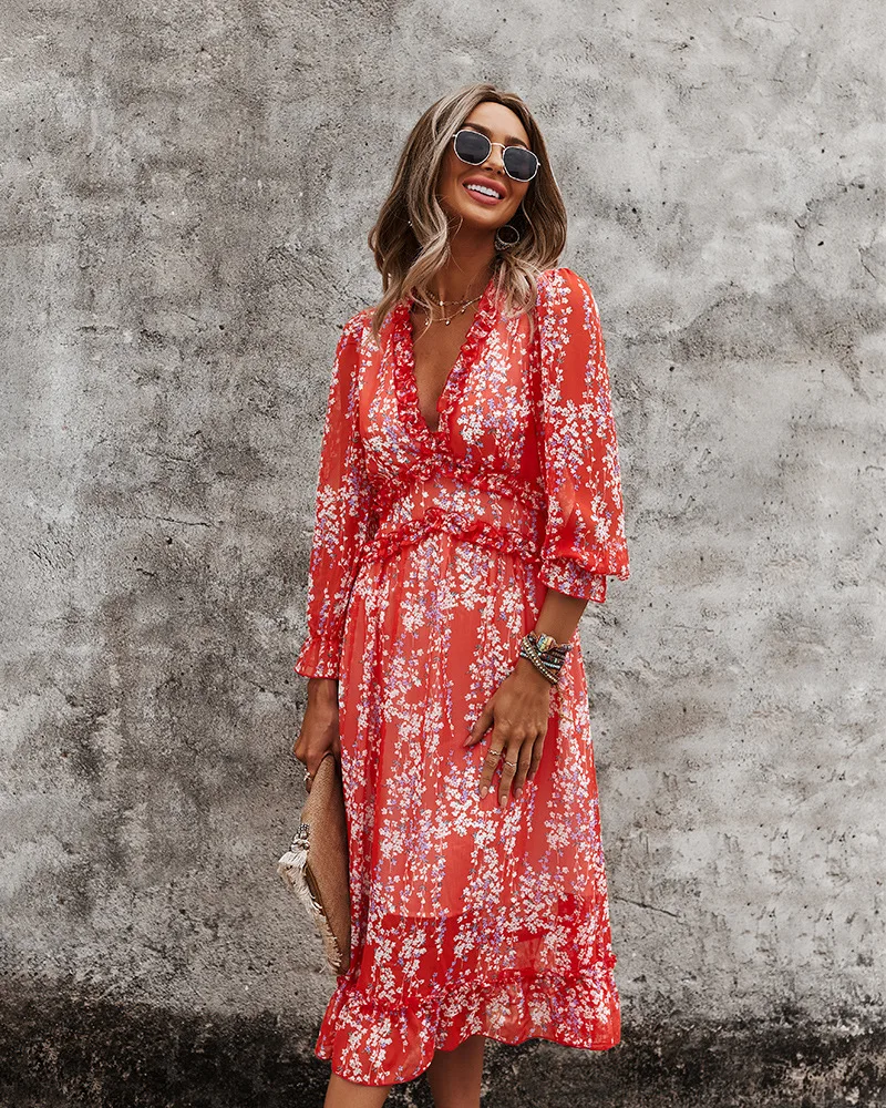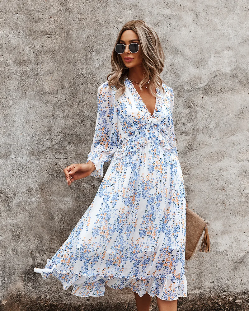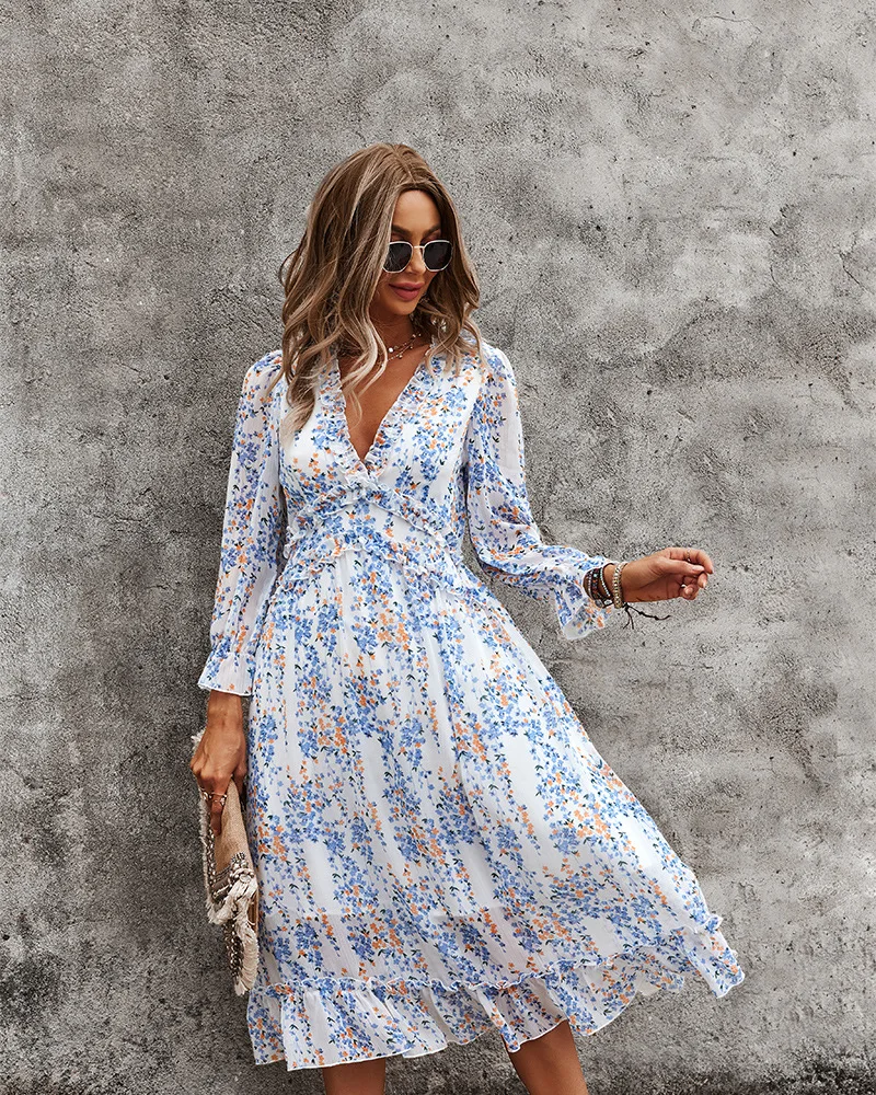 DressBetty - 2023 Spring And Summer Popular V-neck Simple Printed Dress