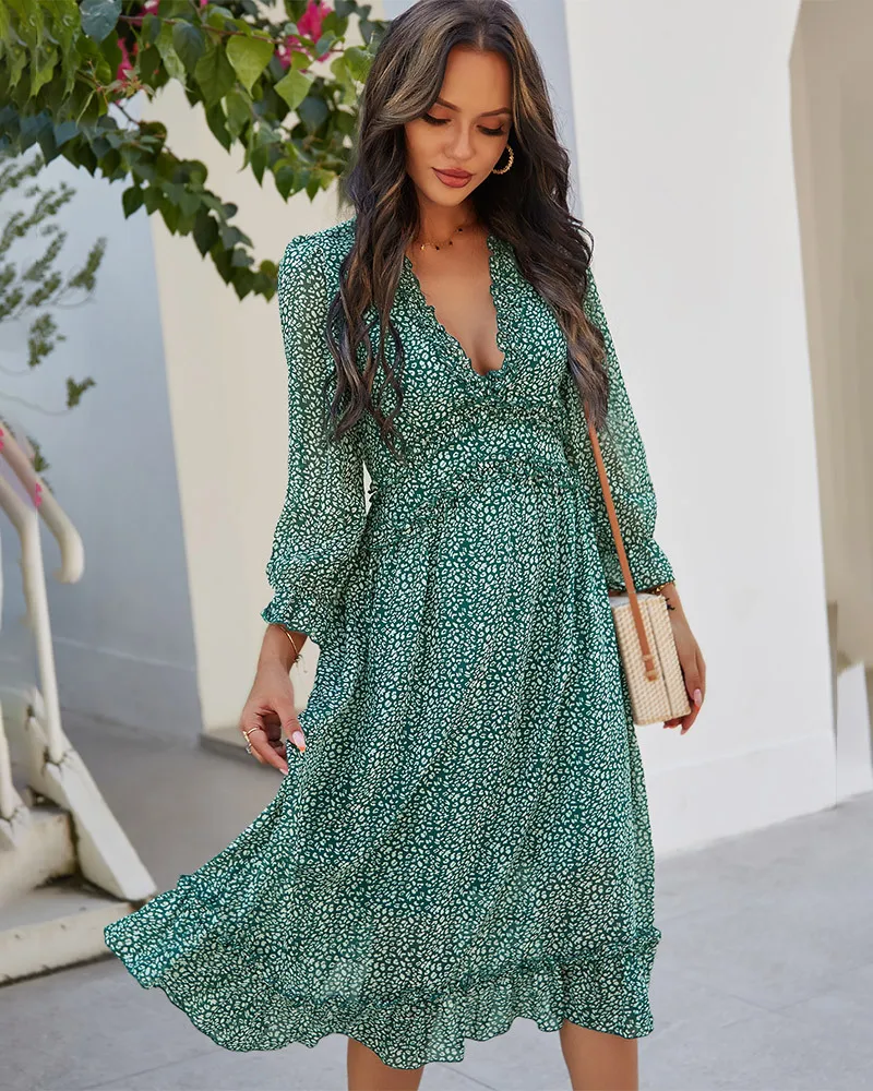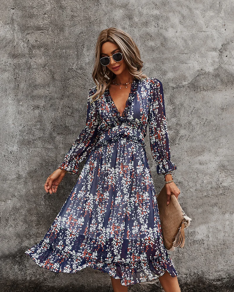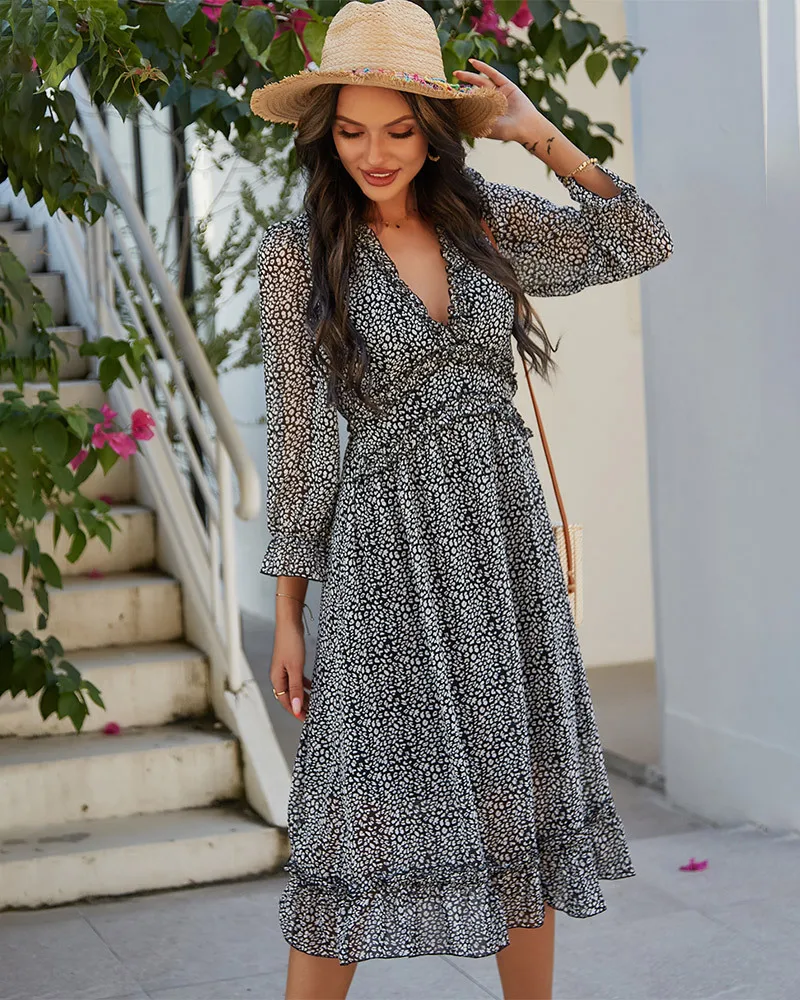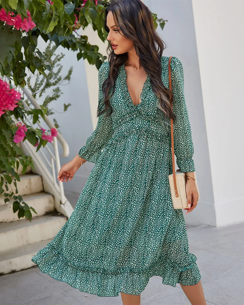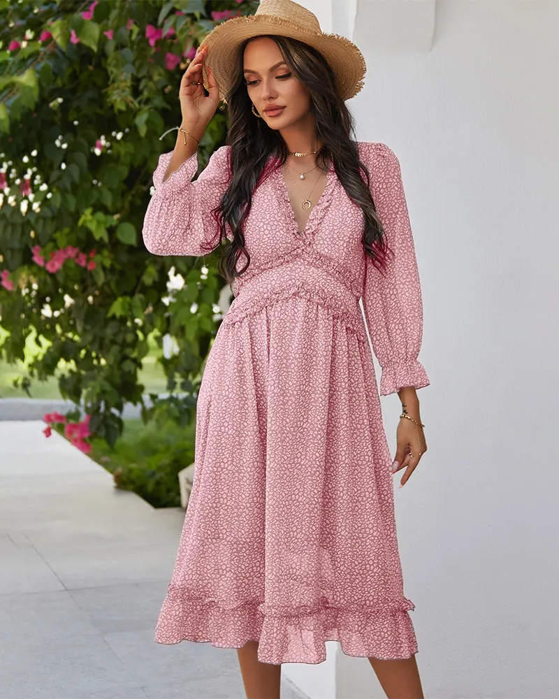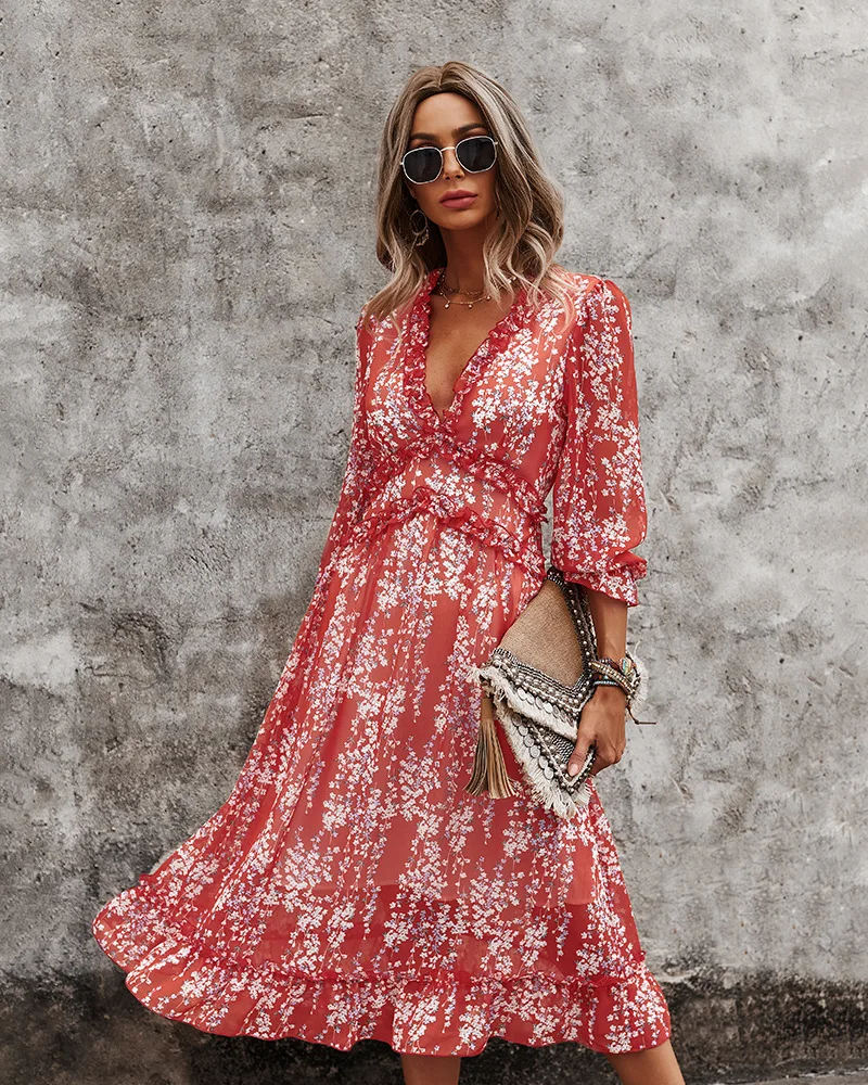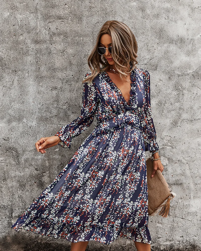 DressBetty - 2023 Spring And Summer Popular V-neck Simple Printed Dress
